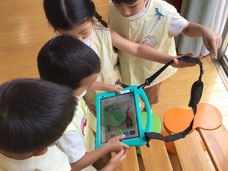 年長組を対象にiPadを使った『KitS』という21世紀型教育カリキュラムを導入しています。創造力やチームワーク力などを育んでいます。