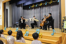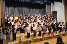 歌や合奏を披露します。各学年に合わせた曲を歌い、合奏では学年が上がるごとに楽器の種類が増え、皆で心を合わせ、美しいハーモニーを届けます。